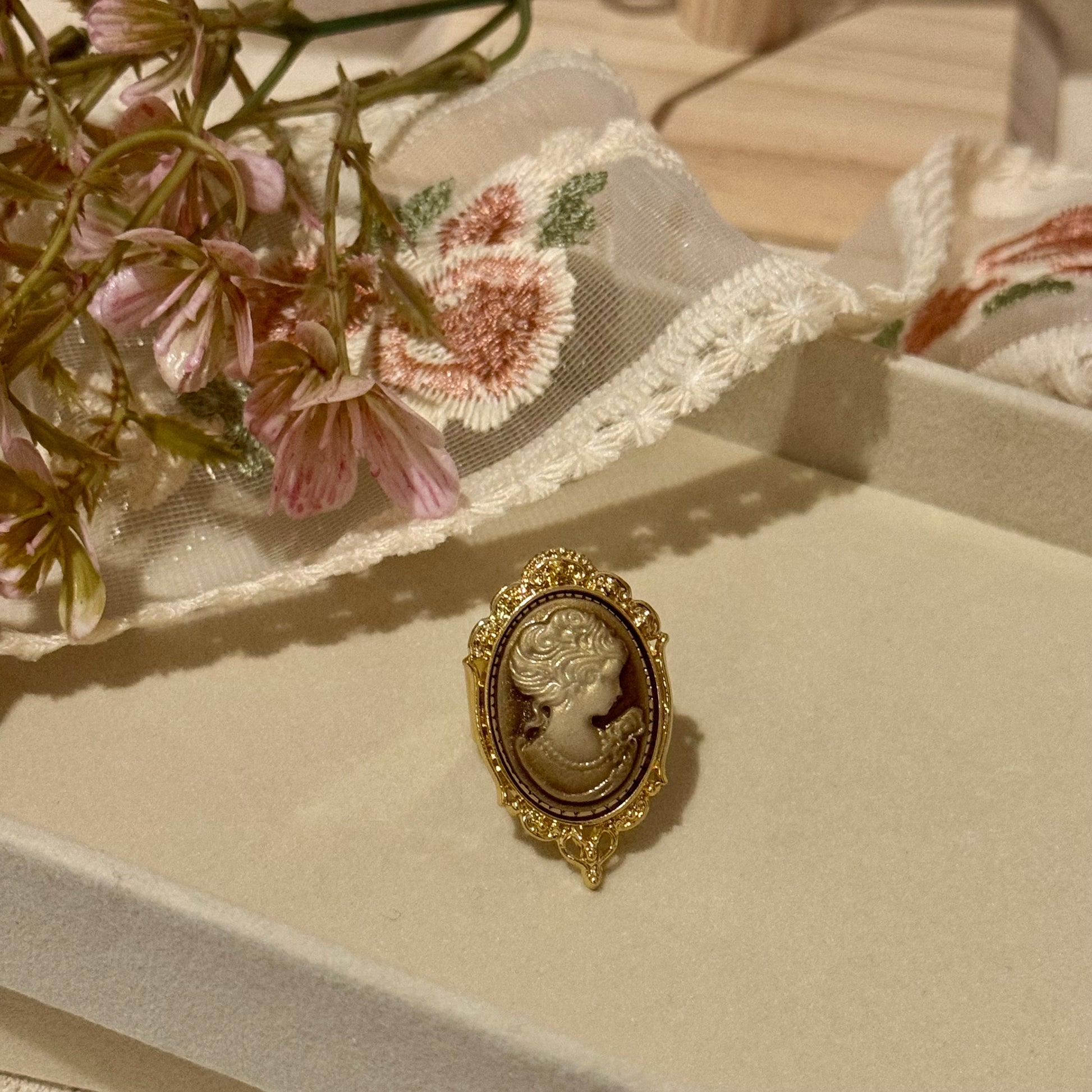 Inspired by the romantic charm of the Victorian era, the Cameo Oval Ring brings a touch of old-world elegance into everyday life. The softly sculpted portrait sits within a classic oval frame, paired with pearl-like accents that echo the graceful jewelry styles worn by women of the 19th century.
