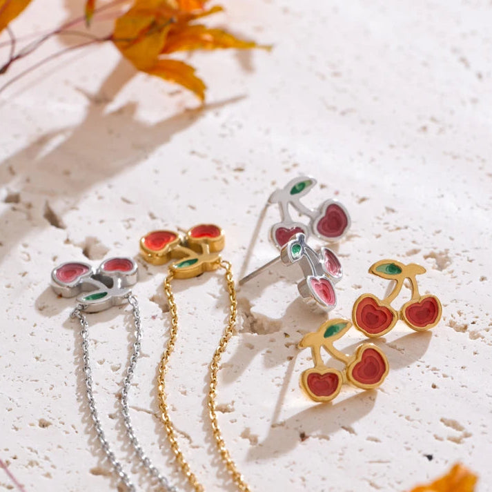 Whether worn to a vintage fair, a seaside date, or given as a nostalgic gift, these cherry charms are a sweet reminder of carefree days and blushing cheeks.