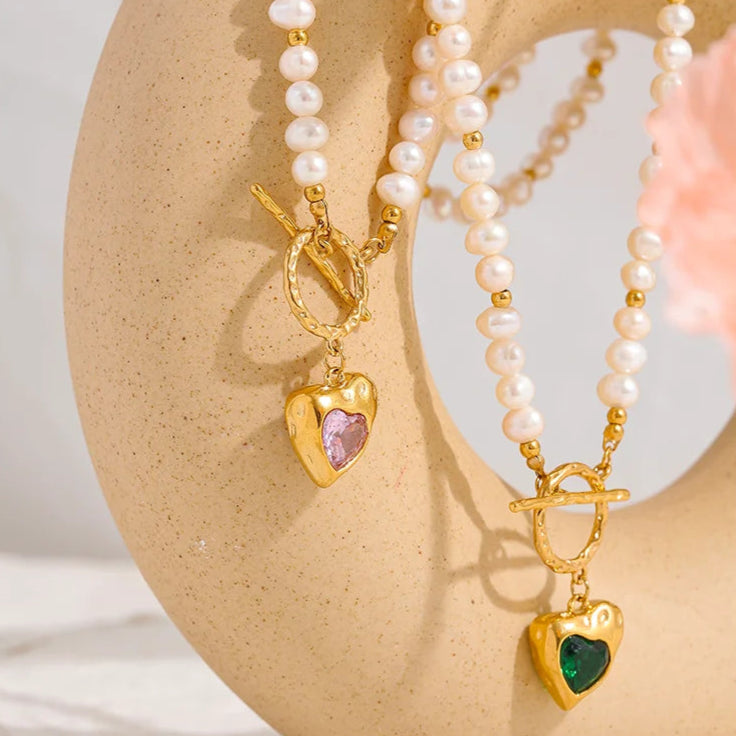 In the 1950s, when Sunday dresses, dainty gloves, and pearl necklaces adorned women strolling through town squares and cinemas, Pure Devotion reflects the era’s graceful ideals of love. This necklace captures that timeless spirit with a heart-shaped cubic zirconia surrounded by natural freshwater pearls—a gentle nod to a time when love was patient, private, and proudly worn close to the heart.