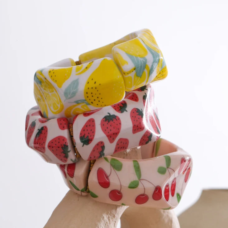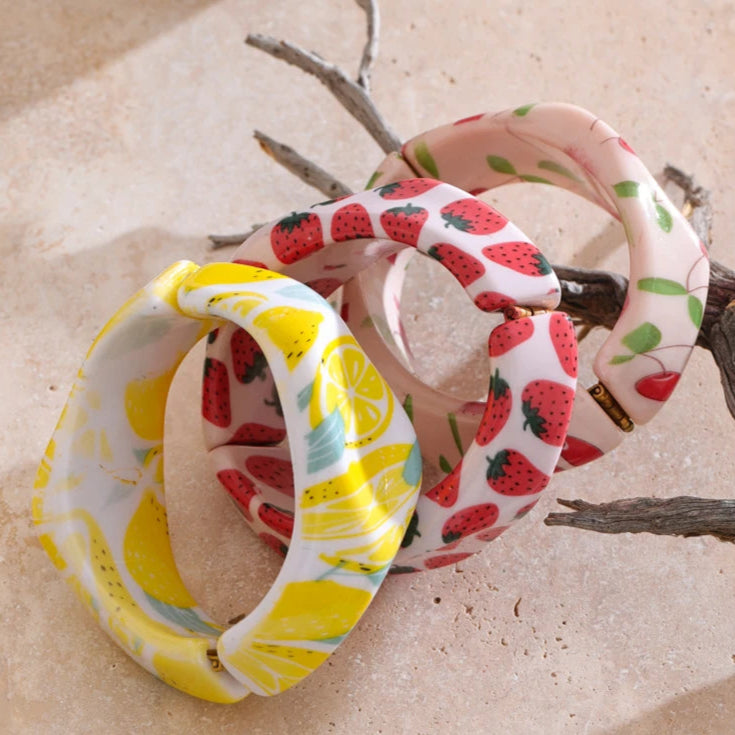 This bangle symbolizes the spirit of freedom, fun, and individuality embraced by young people of the 60s—like a lively fruit parade bringing endless joy and energy. Whether worn to concerts, weekend picnics, or street parties, Mod Fruit Parade is the perfect accessory to showcase a vivid style and playful attitude.