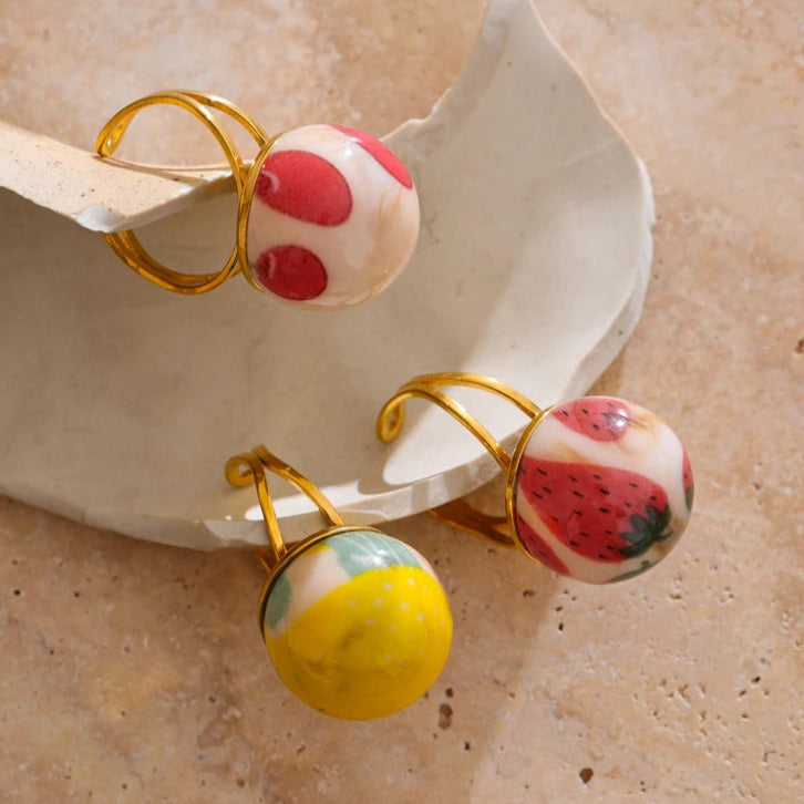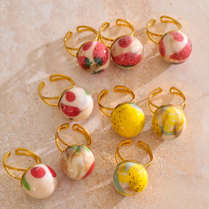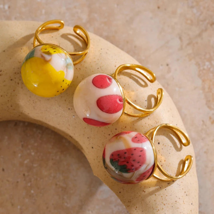 The 1960s were a time of vibrant colors, playful patterns, and youthful energy. Jewelry designs embraced bold enamel hues and fun, whimsical motifs that captured the spirit of the decade. Candy Fruit Bloom reflects this joyful era with its bright enamel finish and lively fruit-inspired theme, embodying the sweetness and freshness that defined 60s fashion.