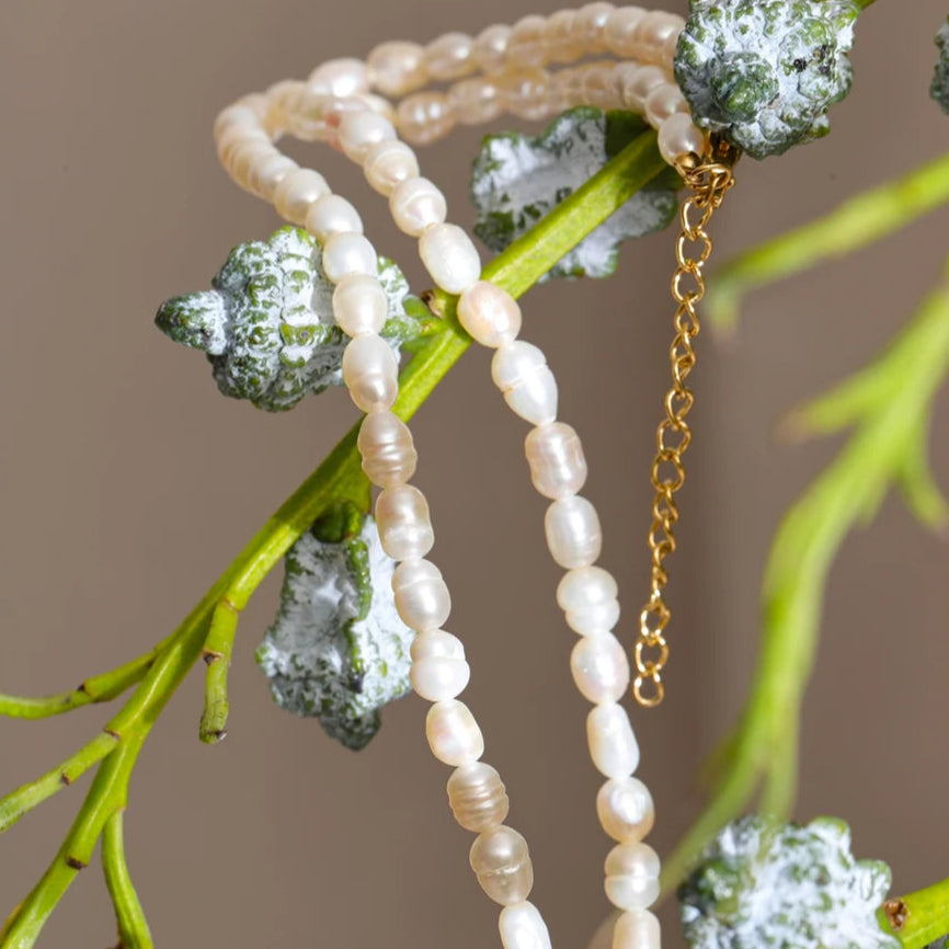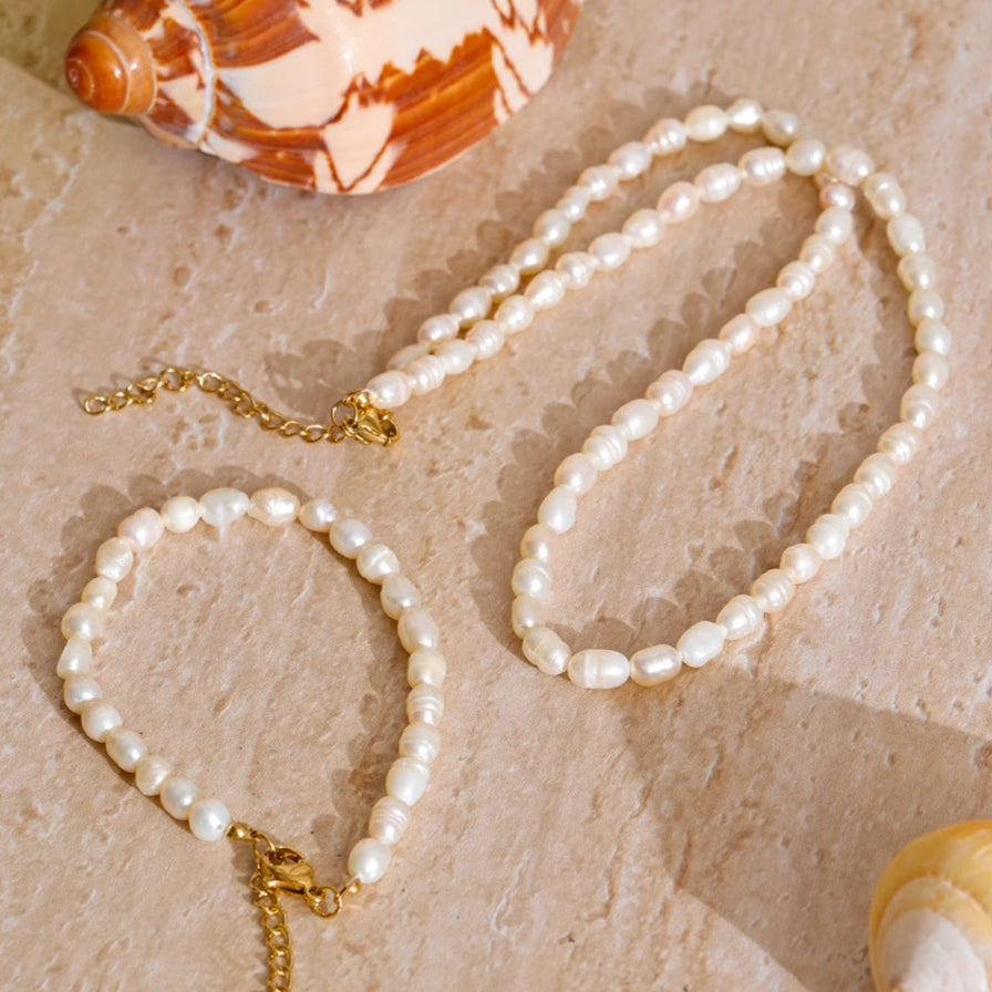 In the 1950s, pearls were the quintessential symbol of ladylike charm and modest elegance. Worn by housewives and Hollywood stars alike, they represented both domestic refinement and public grace. This handmade set, featuring delicate freshwater pearls, echoes the quiet poise of afternoon teas, handwritten letters, and dances under chandeliered ceilings. “Genteel Pearl Set” invites you to relive the era when elegance wasn’t just a style — it was a way of being.