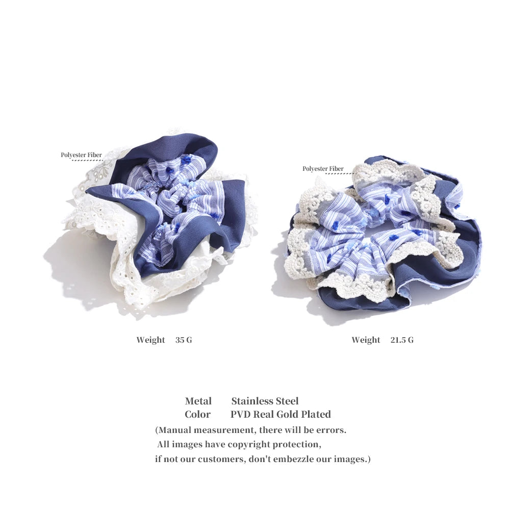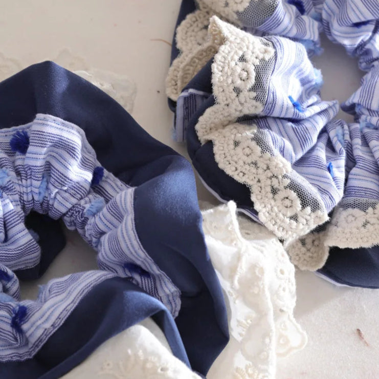 On early summer mornings, when the world is still wrapped in a soft haze, gentle rays of sunlight filter through lace curtains, casting delicate patterns on the wooden floor. This is the perfect time to tuck your hair back with the Morning Mist Lace Scrunchie Hairband—its delicate blue and white embroidery reminiscent of the quiet serenity of dawn. Like the morning mist that lingers softly in the garden, this hairband brings a touch of calm elegance to any outfit, capturing the timeless beauty of peaceful beginnings.