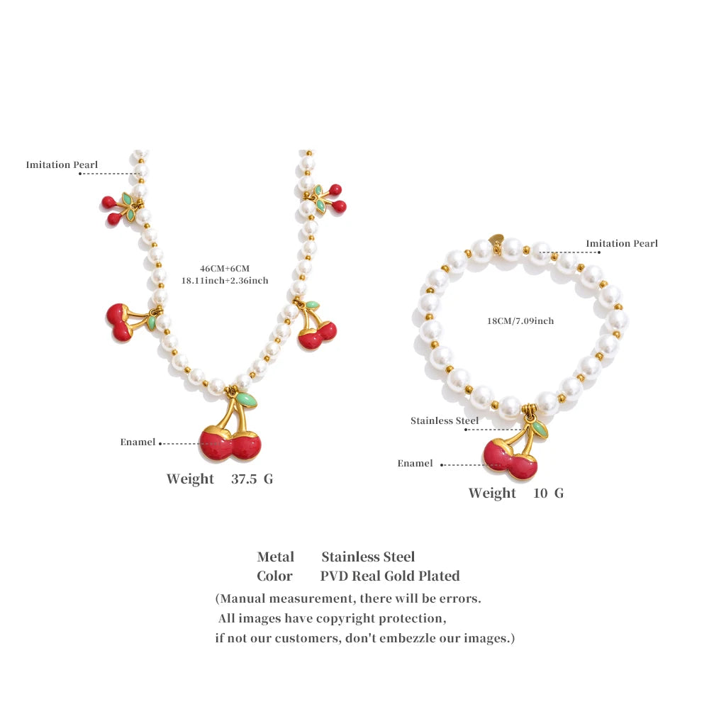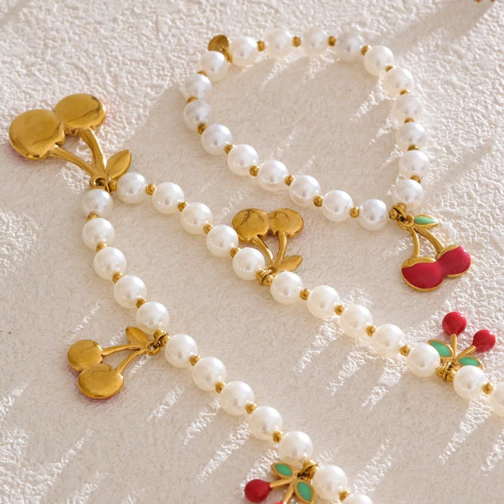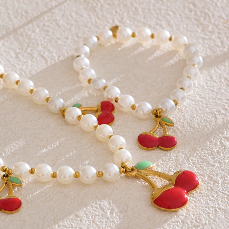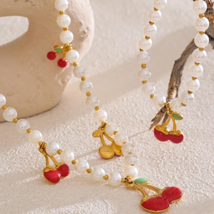 Inspired by the candy-colored spirit of the 1950s, Miss Cherry Love blends faux pearl elegance with playful cherry charms — capturing the innocence, flirtation, and sweetness of a soda shop romance. Back when drive-in diners and jukebox music filled the air, accessories like this were worn by young women who dreamed of first dates, handwritten love letters, and cherry-topped milkshakes. Perfect for gifting your sweetheart, or for adding a nostalgic touch to your own vintage look.